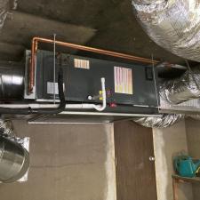This project was a commercial heating cooling HVAC job installing a Daikin 5-ton unit. The Daikin 5 Ton 16.8 SEER2 R-32 High-Efficiency Commercial Package Heat Pump delivers high-efficiency cooling and heating in one self-contained system.